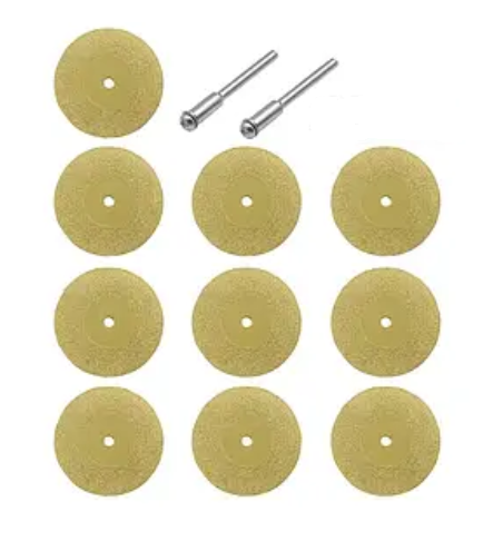 Набір алмазних дисків (золотисті, титанові) Ø25 мм (10 шт. для гравера + 2 утримувачі)